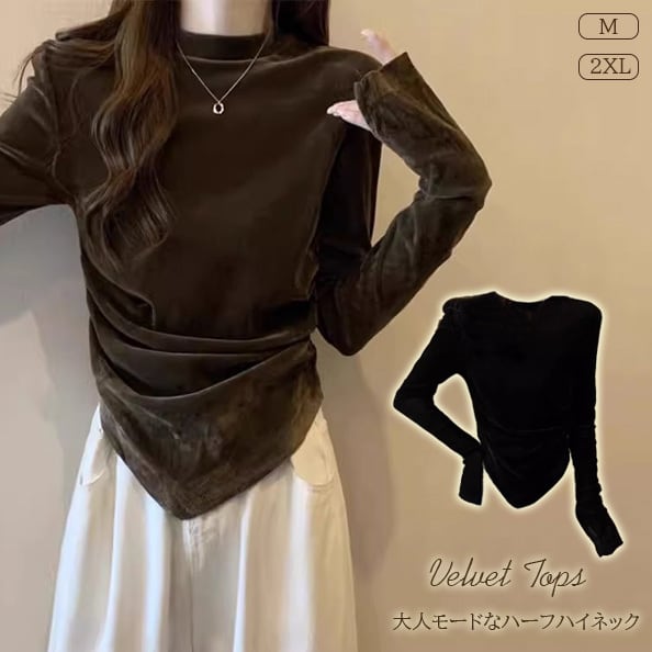 2024新作 レディース ベロア調 ハーフハイネック セーター プルオーバー ベルベット調
