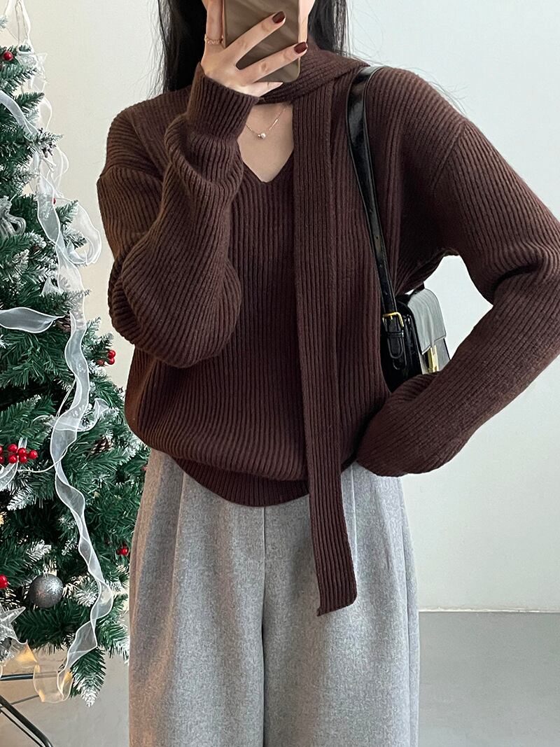 レディース トップス セーター ニット カジュアル 5色 シンプル エレガンス 長袖 2024春新作