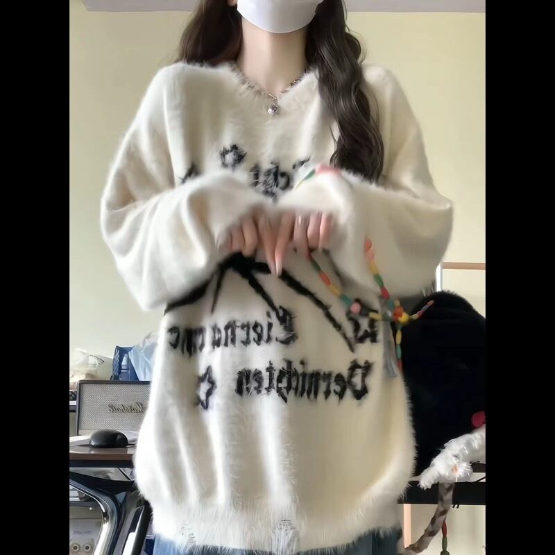 トップス セーター 毛糸 起毛 フェイクファー クルーネック ラウンドネック レディース