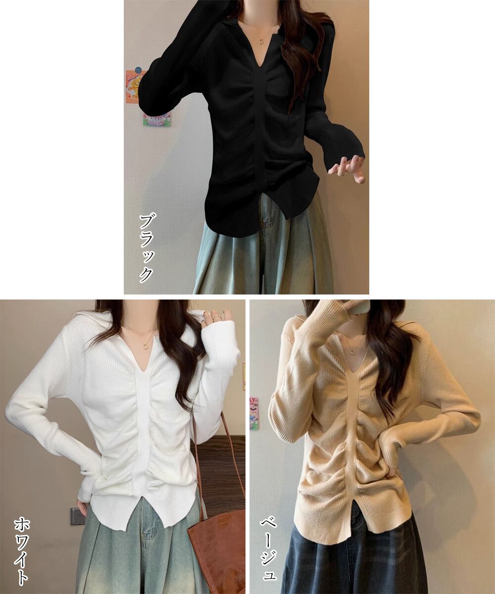 フロントのギャザーデザインが立体感を演出してくれるニットトップス