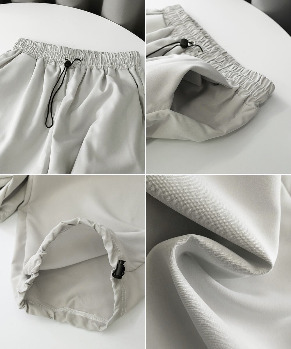 ウエストや裾のドローストリング仕様で着用サイズ感の微調整ができ、腰回りや太ももをしっかりカバーするゆったり幅で快適なはき心地。