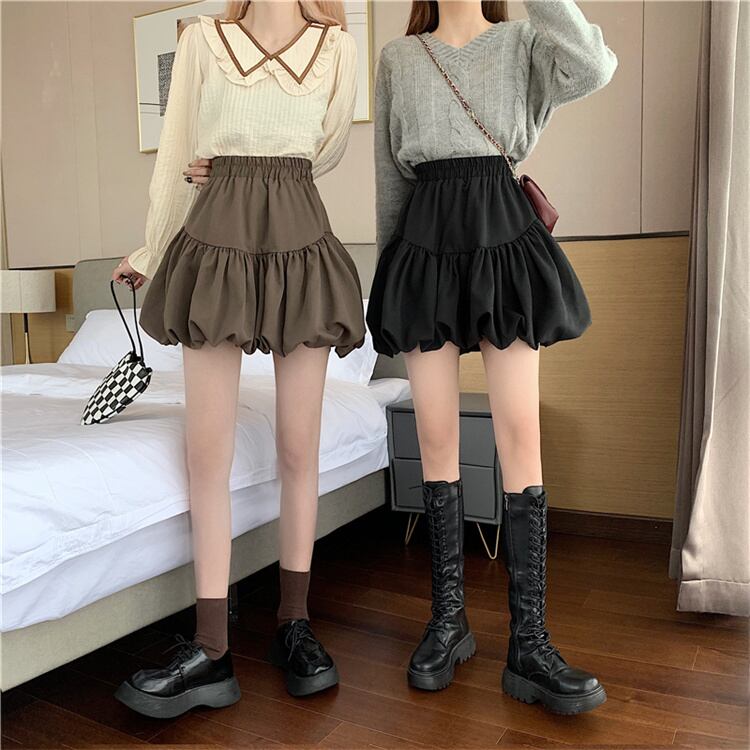 2024春 ポンポン茹でスカート ストリート ハイウエスト aラインスカート ケーキスカート