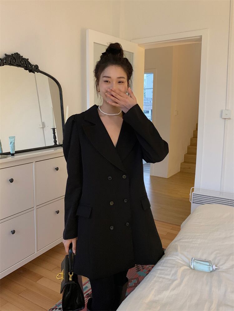 気質 ダブルブレスト ミニスカート 長袖 スーツワンピース 怠惰な風