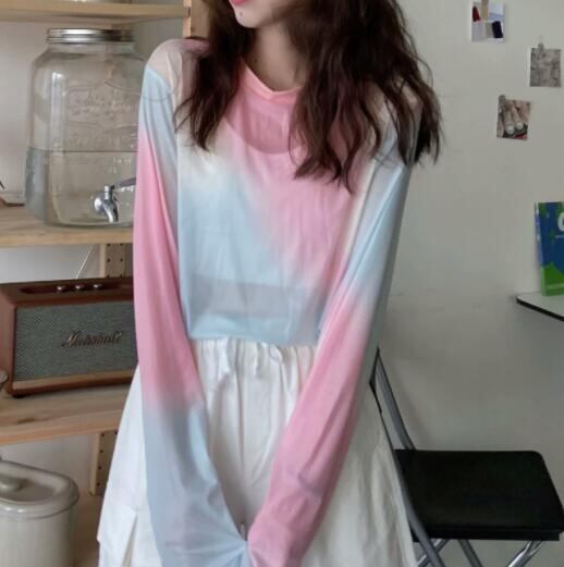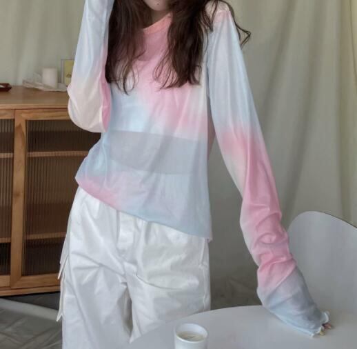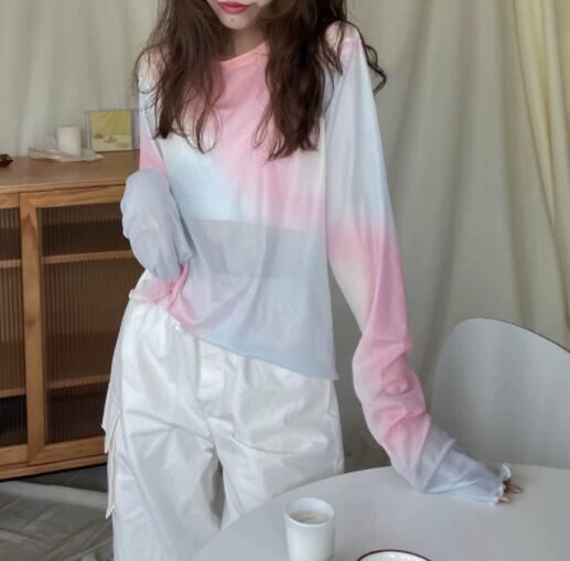 トップス Tシャツ 長袖 ブラウス 紫外線カット メッシュ シースルー