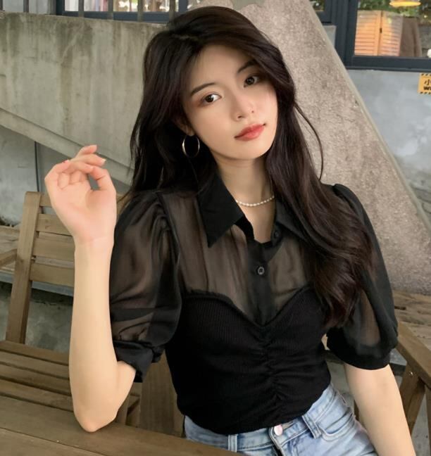 2022春夏新作 トップス 女 レディース 半袖 シャツ ブラウス インナー 2色