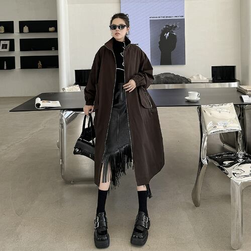 レディース トップス トレンチコート 2024秋冬新作 ゆったり ロング丈 デザイン