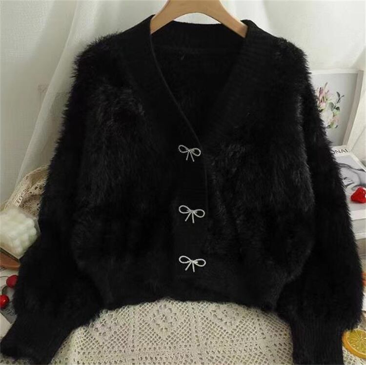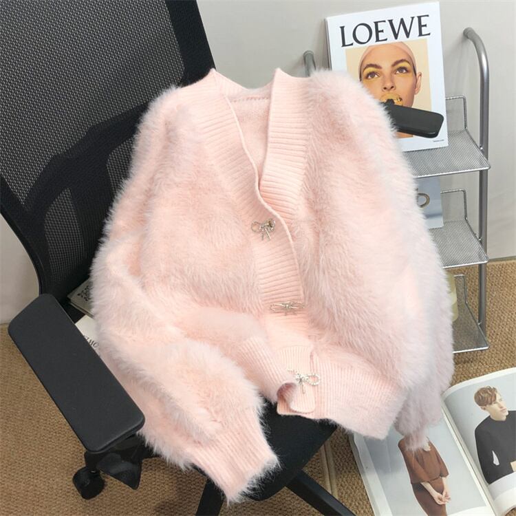 ミンクパイル コート 2024秋冬 厚め セーター Vネック ニットトップス