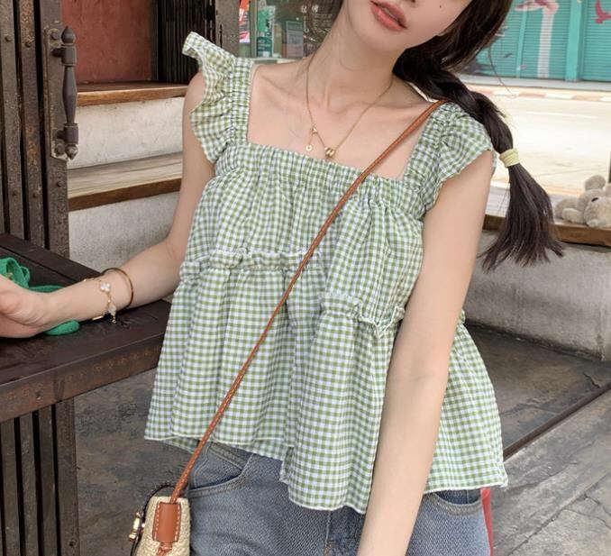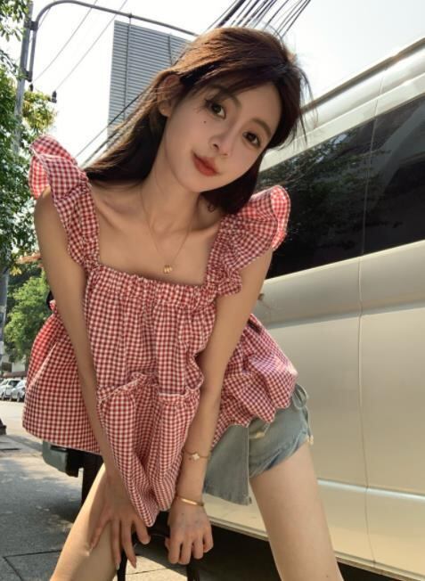 2024春夏新作 トップス 女 レディース 袖なし チェック柄 シャツ ブラウス コート アウター