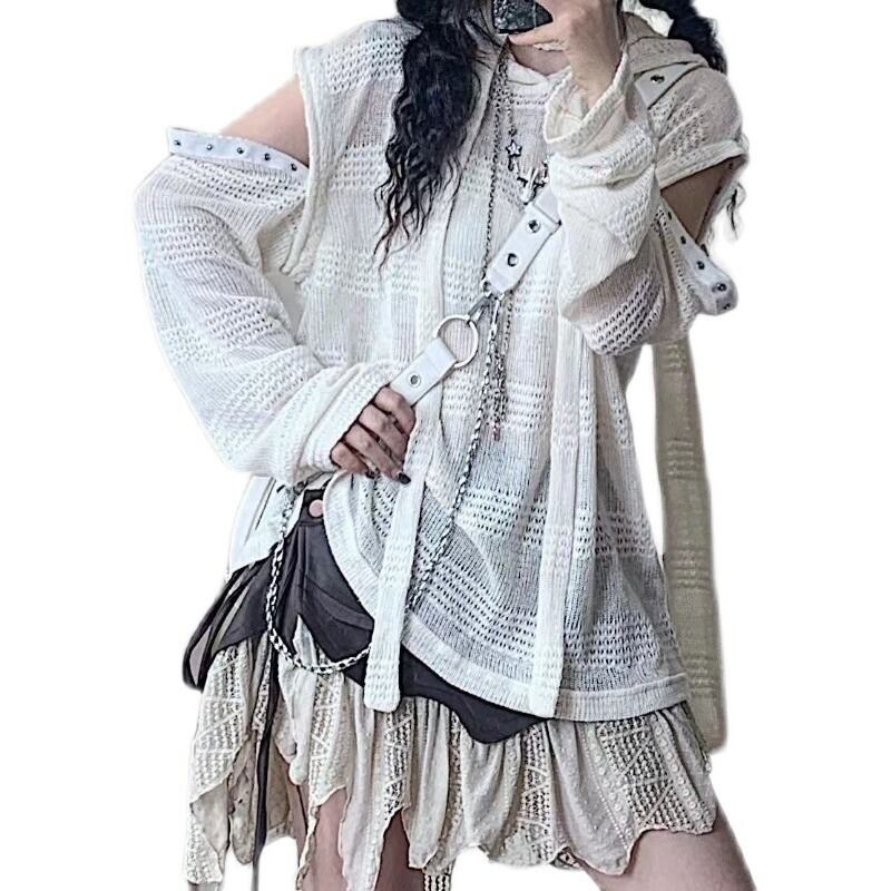 トップス ニット セーター パーカー フード メッシュ レース レディース