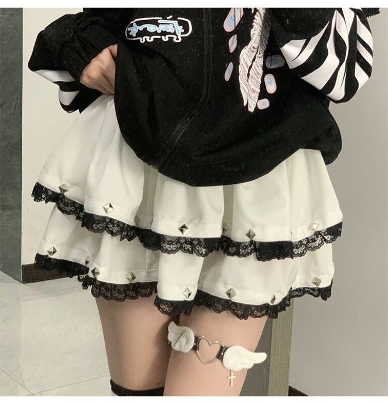 スカート ハイウェスト ミニスカート Aライン レース レイヤード レディース