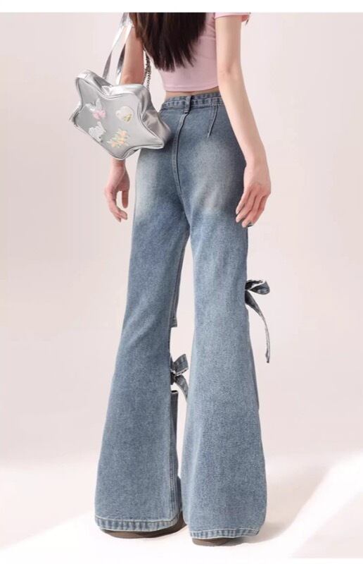パンツ ボトムス ズボン ジーンズ デニム リボン フレアデニム レディース