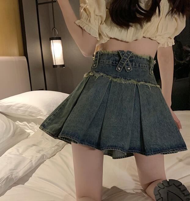 2024春夏新作 ボトムス 女 レディース ハイウエスト デニム ミニスカート プリーツスカート