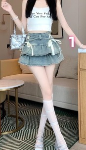 2024春夏新作 ボトムス 女 レディース ハイウエスト デニム ミニスカート 台型スカート