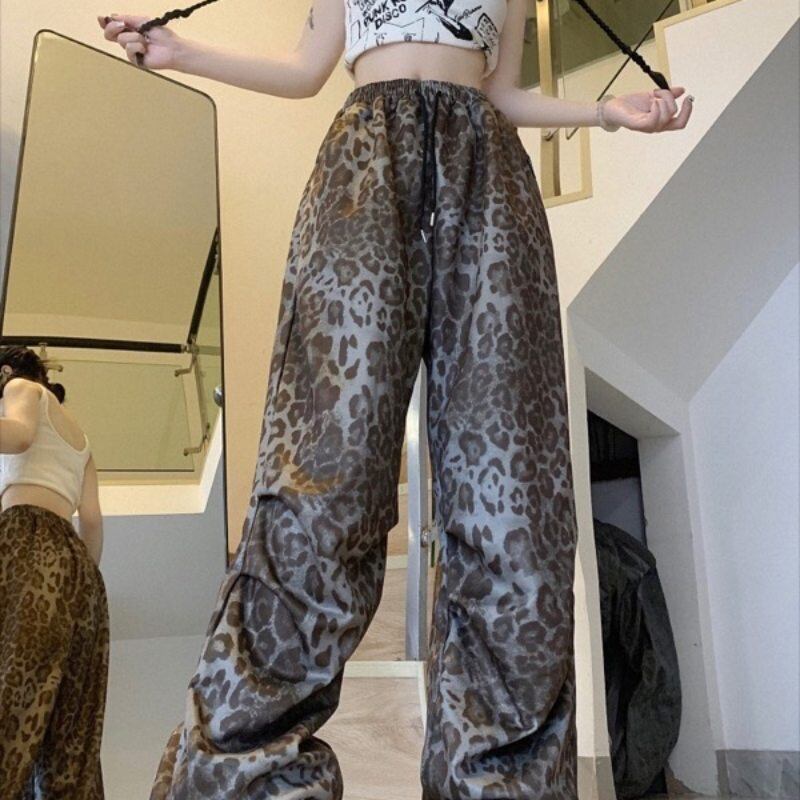 パンツ ボトムス ズボン ストレート プリント 豹柄 アニマル柄 レディース