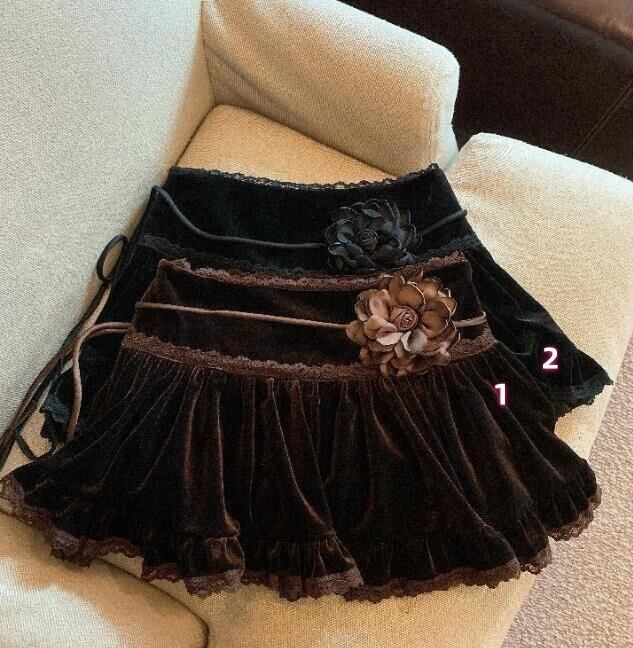 2024秋冬新作 ボトムス 女 レディースローライズ ベロア ミニスカート 台型スカート
