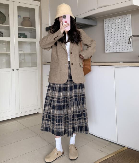 2024秋冬新作 ボトムス 女 レディース ハイウエスト チェック柄 ロングスカート 台型スカート