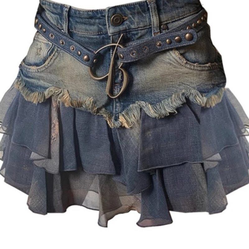 スカート ミニスカート ハイウェスト デニムスカート レイヤード 細身 スリム レディース