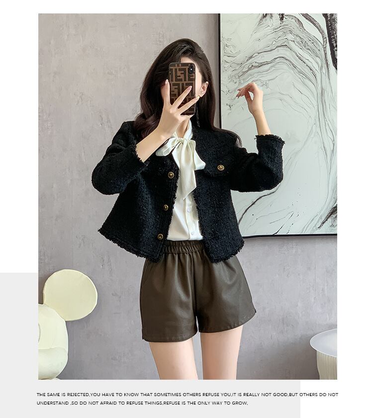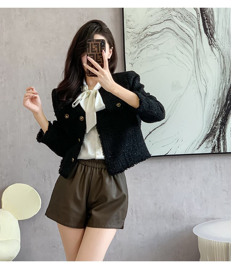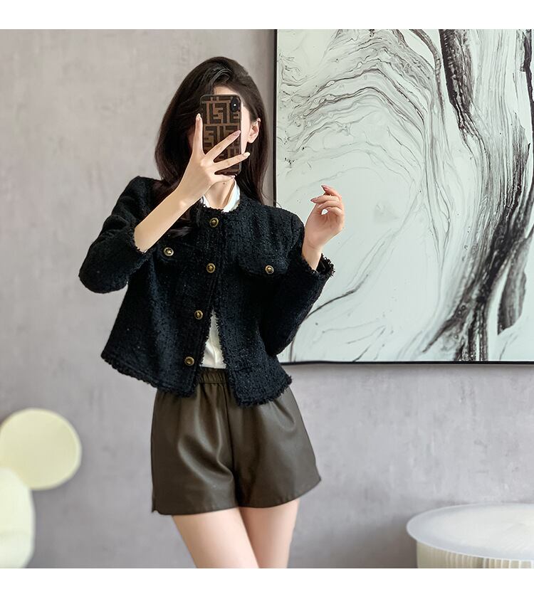 レディース トップス テーラードジャケット ラウンドネック 長袖 ショット丈 無地
