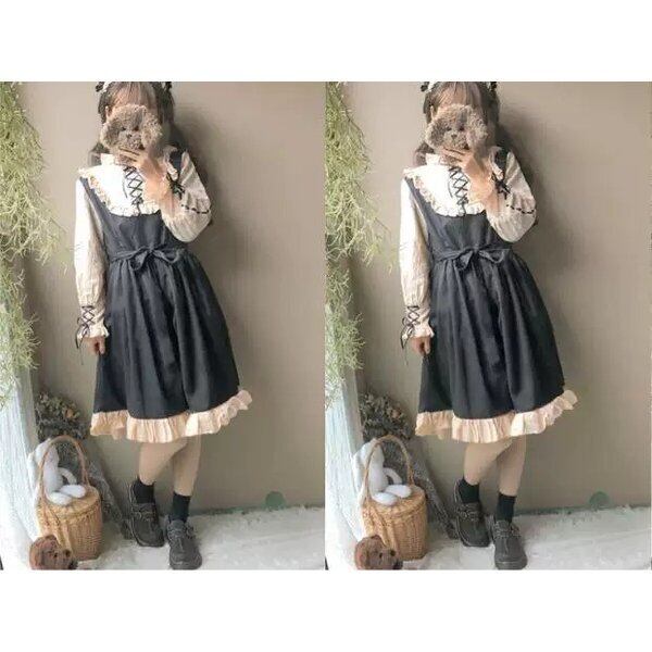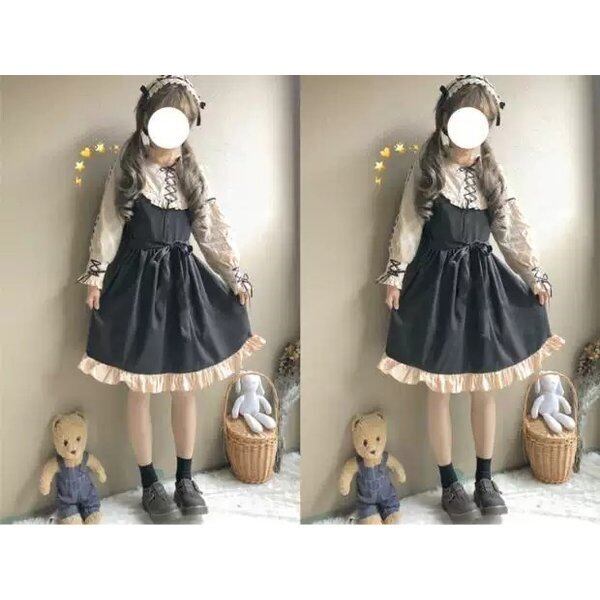 ベージュ ロリータ コスプレ 可愛い 長袖 ワンピース ゴスロリ