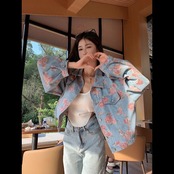 トップス アウター ジャケット デニムジャケット Gジャン プリント レディース