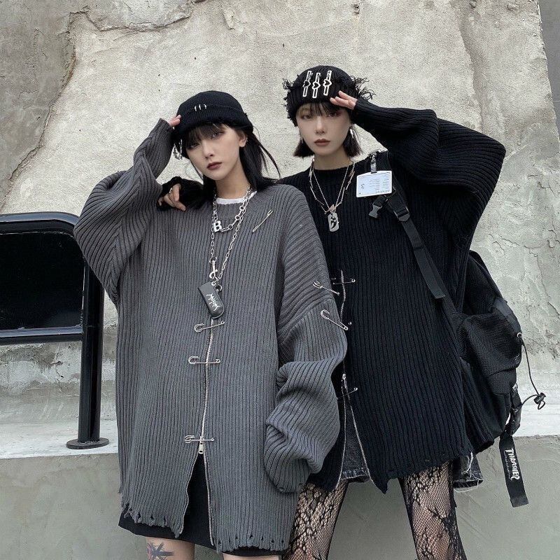 トップス ニット セーター 毛糸 ダメージ加工 クルーネック ラウンドネック