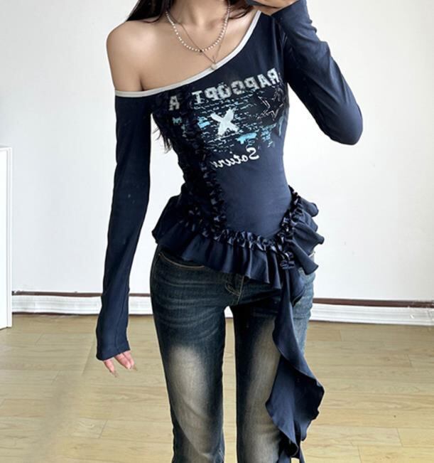 2024春秋新作 レディース 女 長袖 プリント Tシャツ トップス インナー