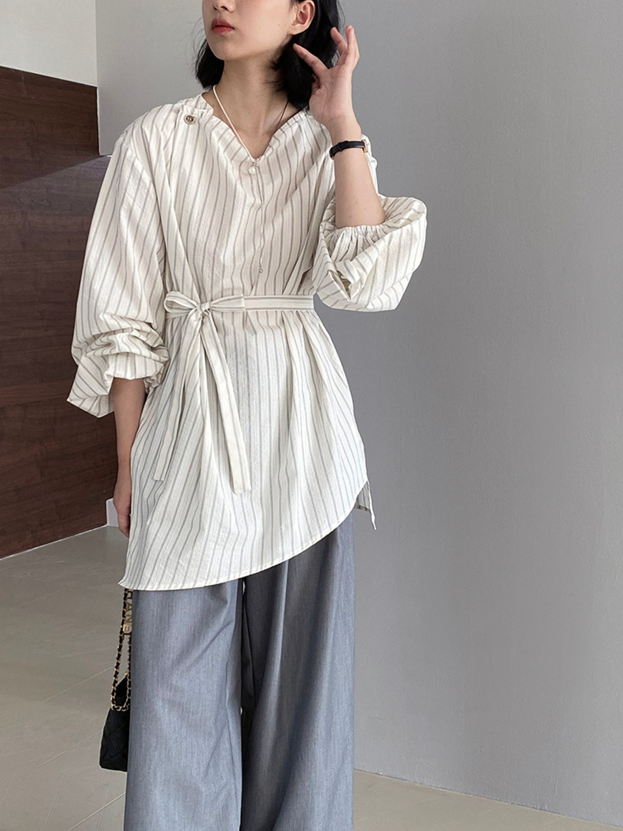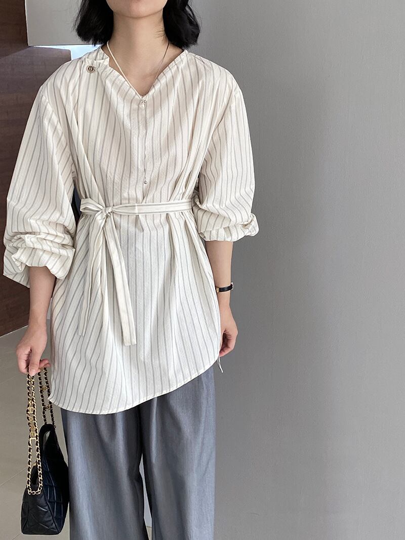トップス レディース シャツ ボーダー 2024秋新作 2色 韓国風 カジュアル 長袖