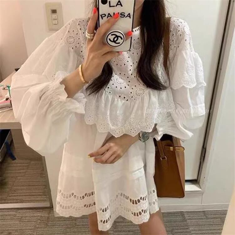 ドールシャツ ミニスカート ステンシル レース フリル ハイウエスト ゆったりする