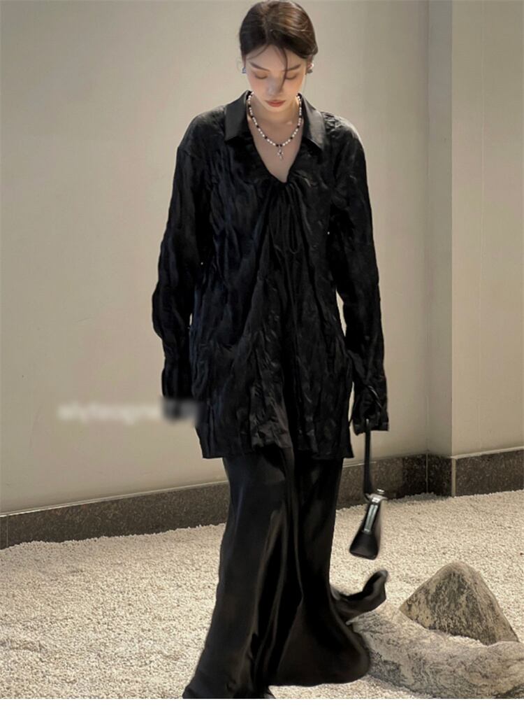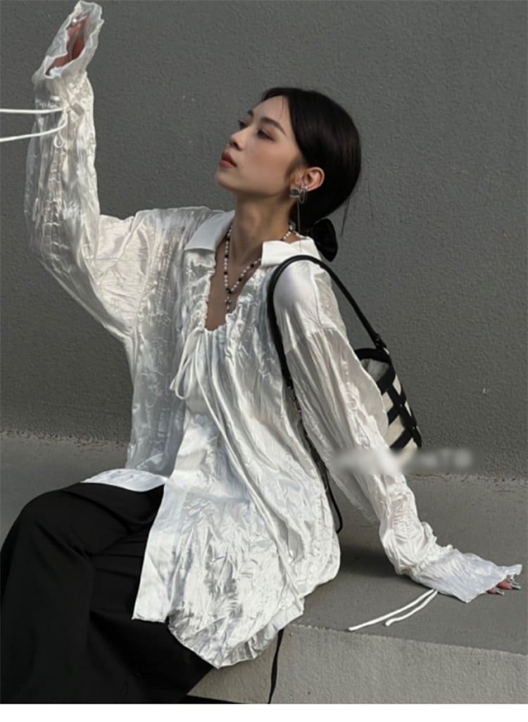 怠惰な風 Vネック 長袖 シャツ 紐抜き 水波紋 デザインセンス 日焼け止めの上着