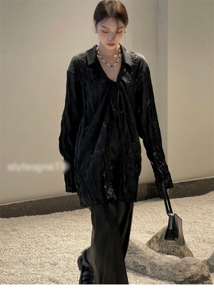 韓国大人気 デザイン 怠惰な風 Vネック 長袖 シャツ 紐抜き 水波紋 デザインセンス 日焼け止めの上着