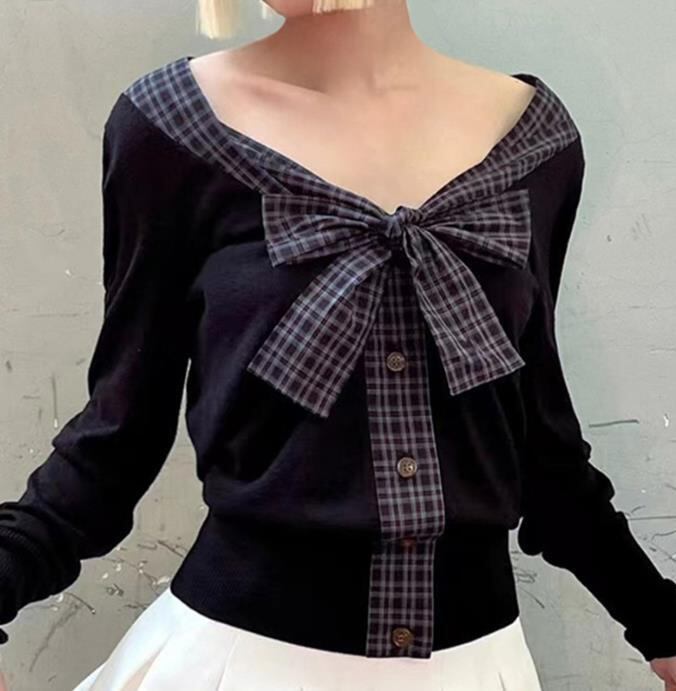 2024秋冬新作 レディース 女 長袖 チェック柄 ニット Tシャツ トップス インナー カットソー