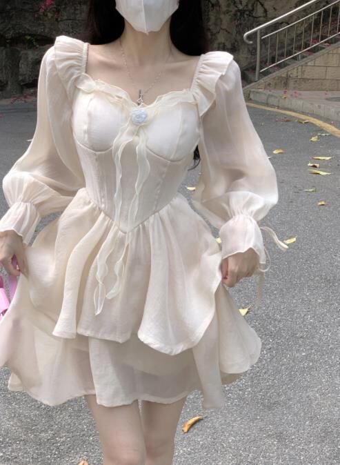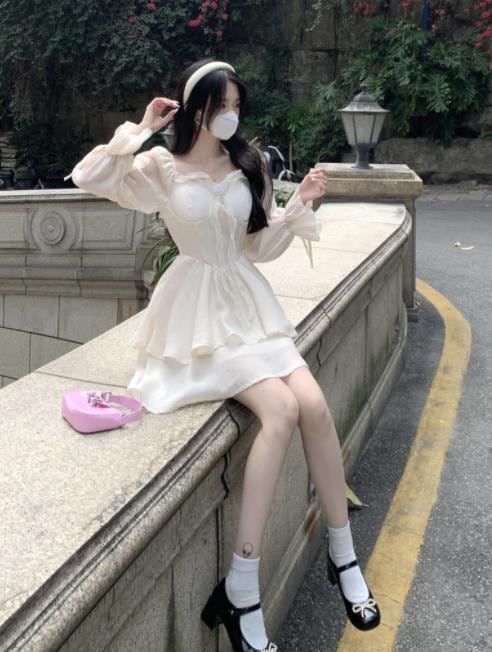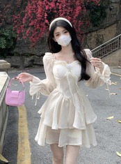 2024秋冬新作 女 レディース ハイウエスト 長袖 ミニ ワンピース ドレス 台型スカート
