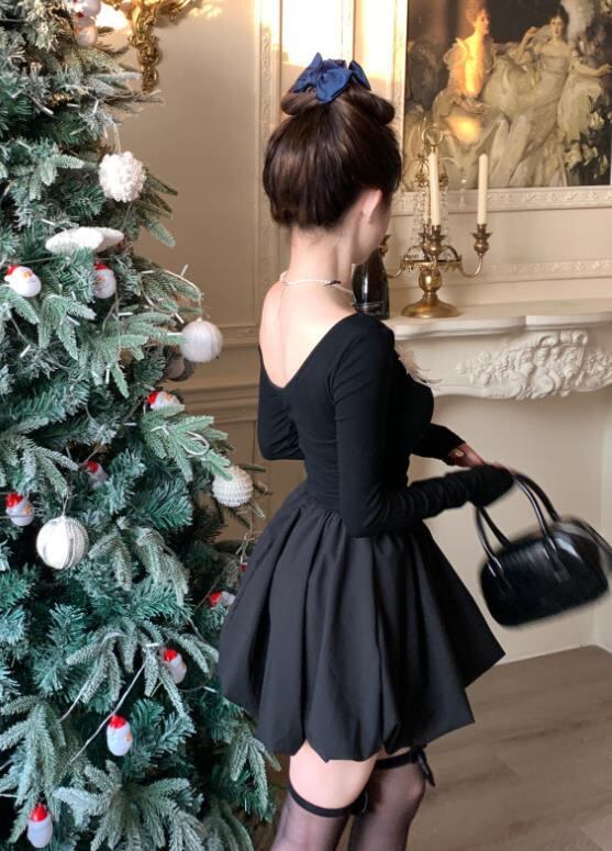 2024秋冬新作 女 レディース ハイウエスト 長袖 ミニ ワンピース ドレス 台型スカート