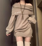 2024春秋新作 女 レディース ハイウエスト 長袖 ニット ミニ ワンピース ドレス タイトスカート