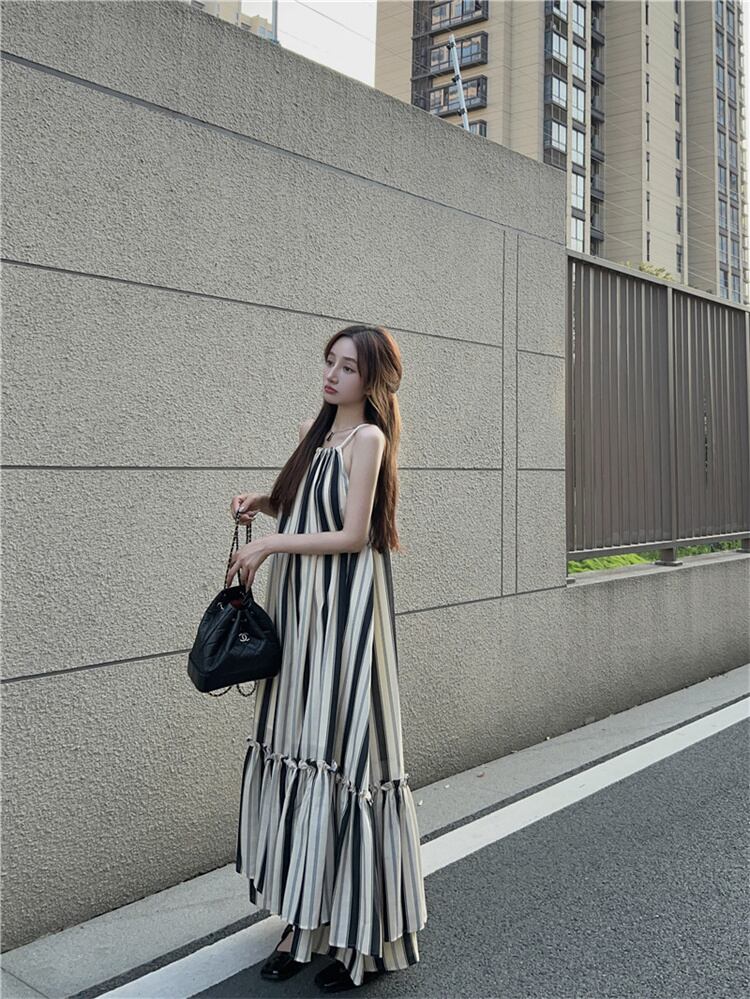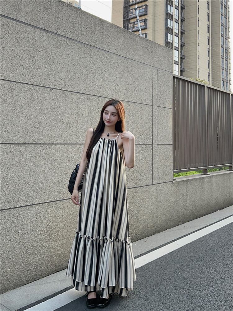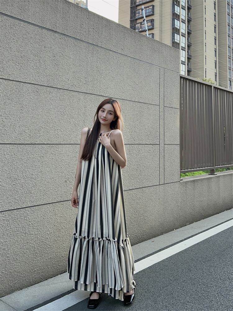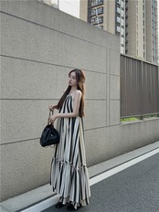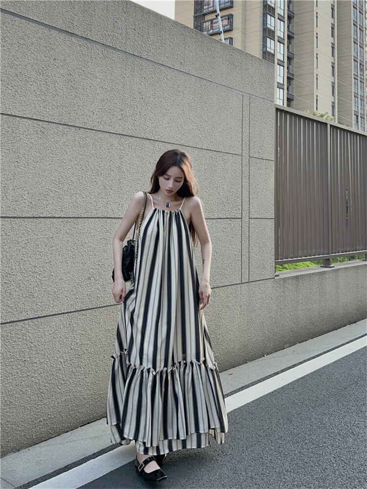 いい印象を与える ストライプ ジャンパースカート ケーキスカート ロングスカート 肌にやさしい スリム