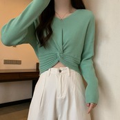 クロップド丈 ニットウェア ねじり リブニット 長袖 無地 大人可愛い ニットセーター カジュアル ニットソー 普段着