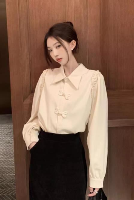 2024春秋新作 トップス 女 レディース 長袖 無地 シャツ ブラウス コート アウター