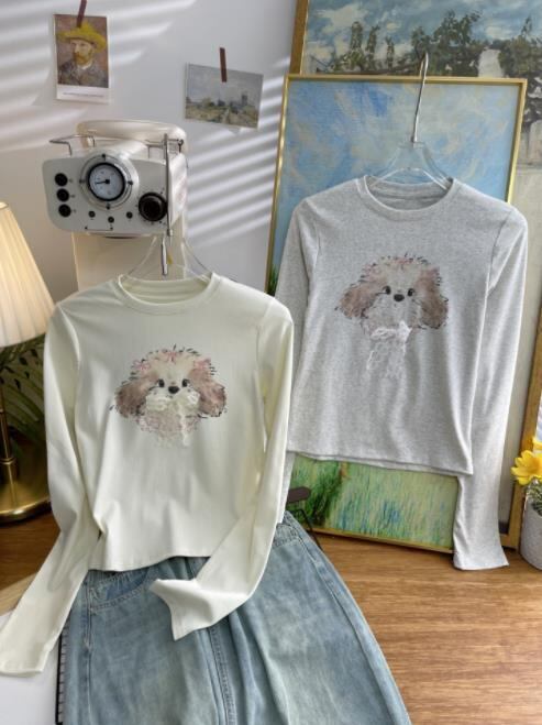 2024秋冬新作 レディース 女 長袖 丸首 プリント Tシャツ トップス インナー
