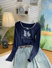 2024秋冬新作 レディース 女 長袖 丸首 プリント Tシャツ トップス インナー
