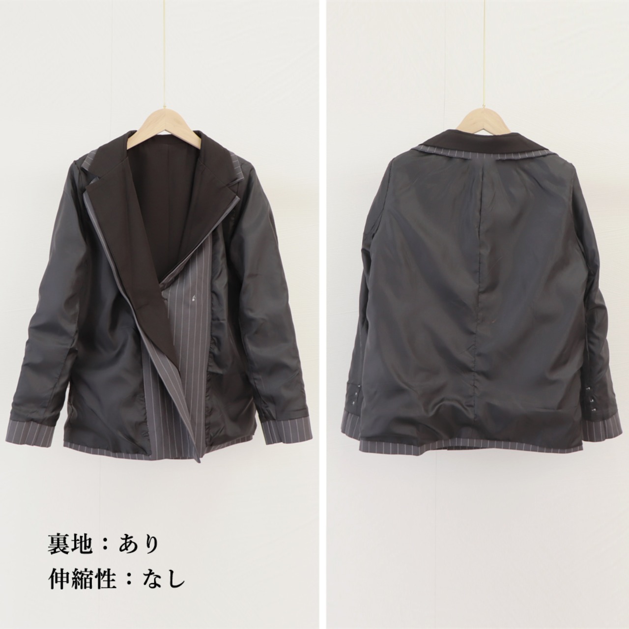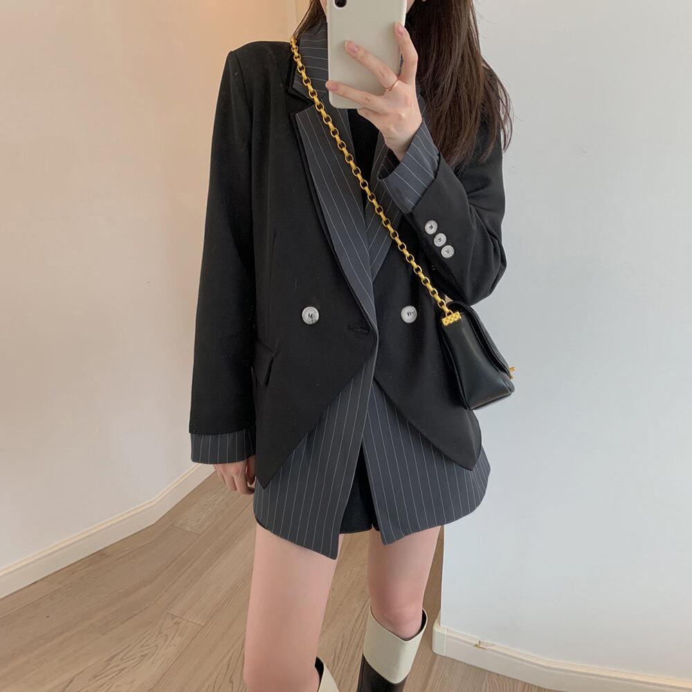ジャケット レイヤード風ストライプ柄オフィスカジュアル 切り替えこなれ感 韓国風 羽織り ライトアウター着やせ長袖