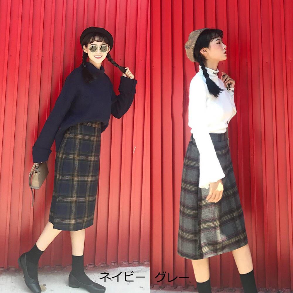 チェックスカート レディース ハイウエスト Aラインスカート ひざ丈 ボトムス
