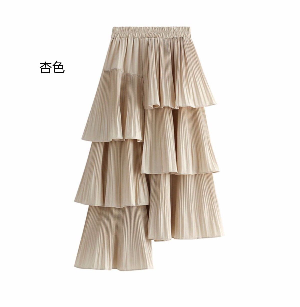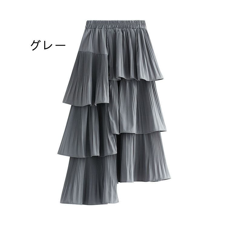 アシンメトリーなフリルが段になったティアードスカート。 主役スカートです。きれいなラインで動くたびに揺れるレディコーデ★☆エレガントで上品です★左右でレングスが異なるティアードプリーツは、遊び心満載の1着。キュートで可愛らしいシルエットですが、ロング丈で落ち着いた色味なので、大人のモード系、ゴシック系ゴスロリ系ロリータ系のファッションにも合わせやすい万能デザイン。ウエストはゴム仕様になっているので、比較的どんなスタイルの人にも着こなせるアイテムとなっています。