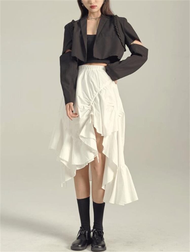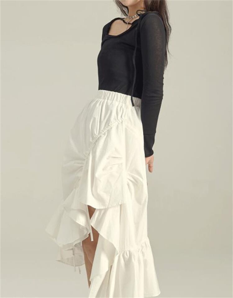 当店のおすすめ デザインセンス イレギュラー フリル フィッシュテールスカート ピュアカラー エレガント