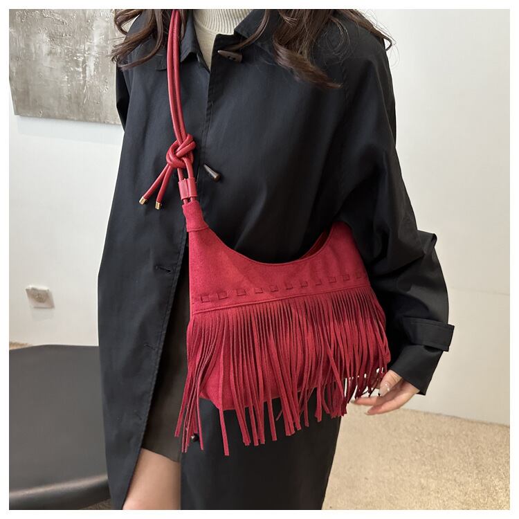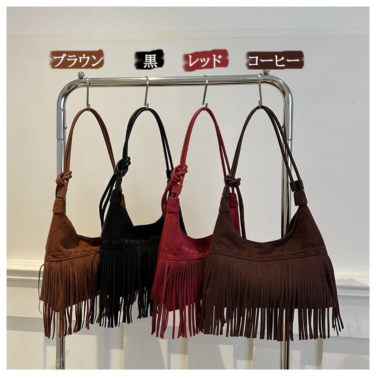 新作 レディース ワンショルダーバッグ 斜め掛け 肩掛け スエード調 フリンジ加工
