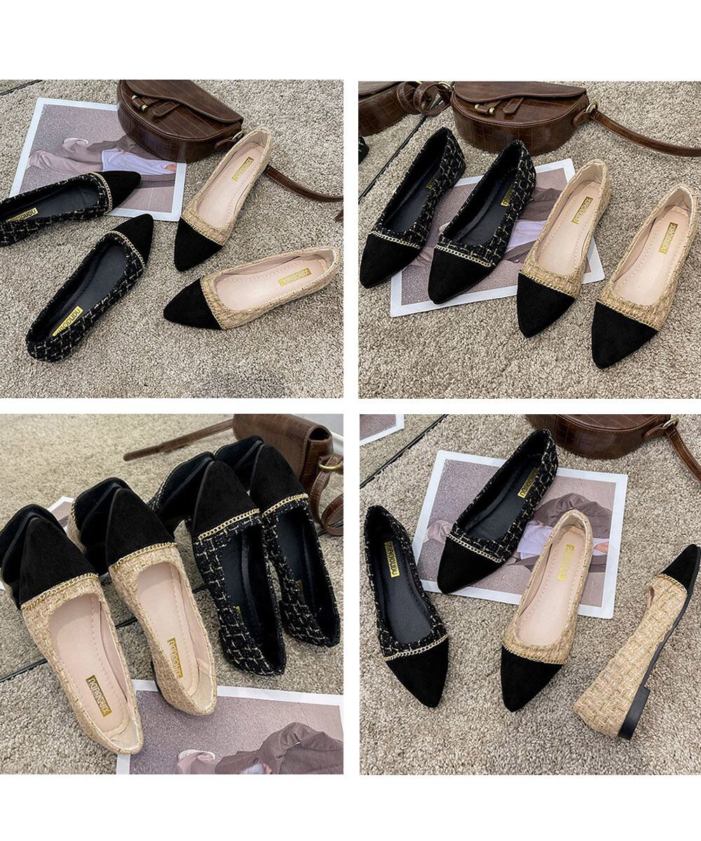 ポインテッドトゥパンプス ローヒール 痛くないぺたんこパンプス 歩きやすい 走れる配色パンプス 脱げない プチプラ婦人靴