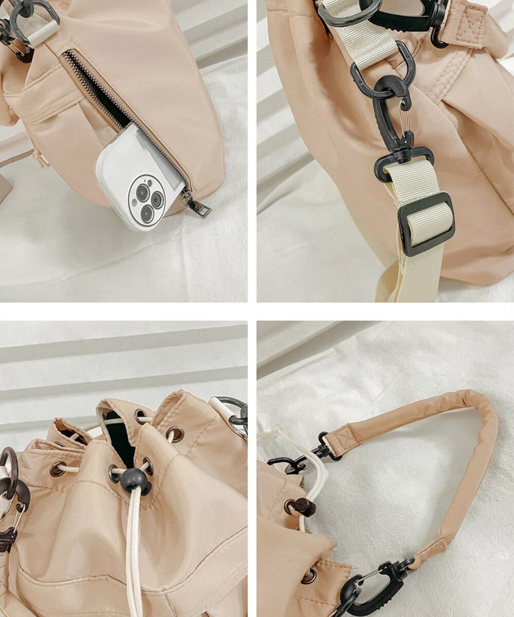 韓国ファッションバッグ レディース サイドポケット付き 超軽量ナイロン 3way ドローストリング付き 男女兼用