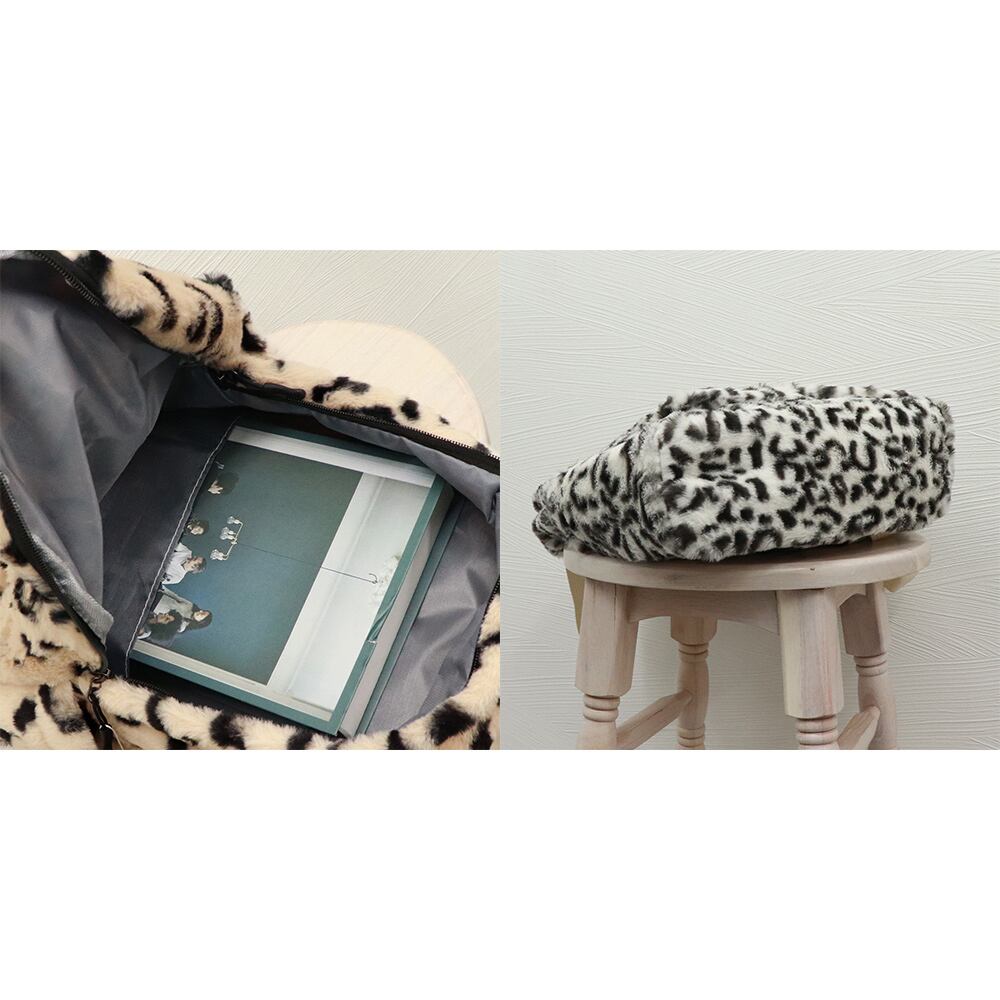 ヒョウ柄の存在感のあるバッグなので、シンプルコーデのアクセント使いにピッタリ。