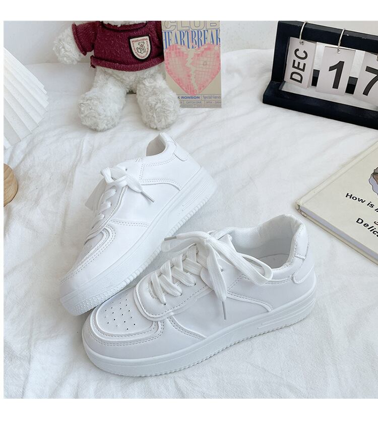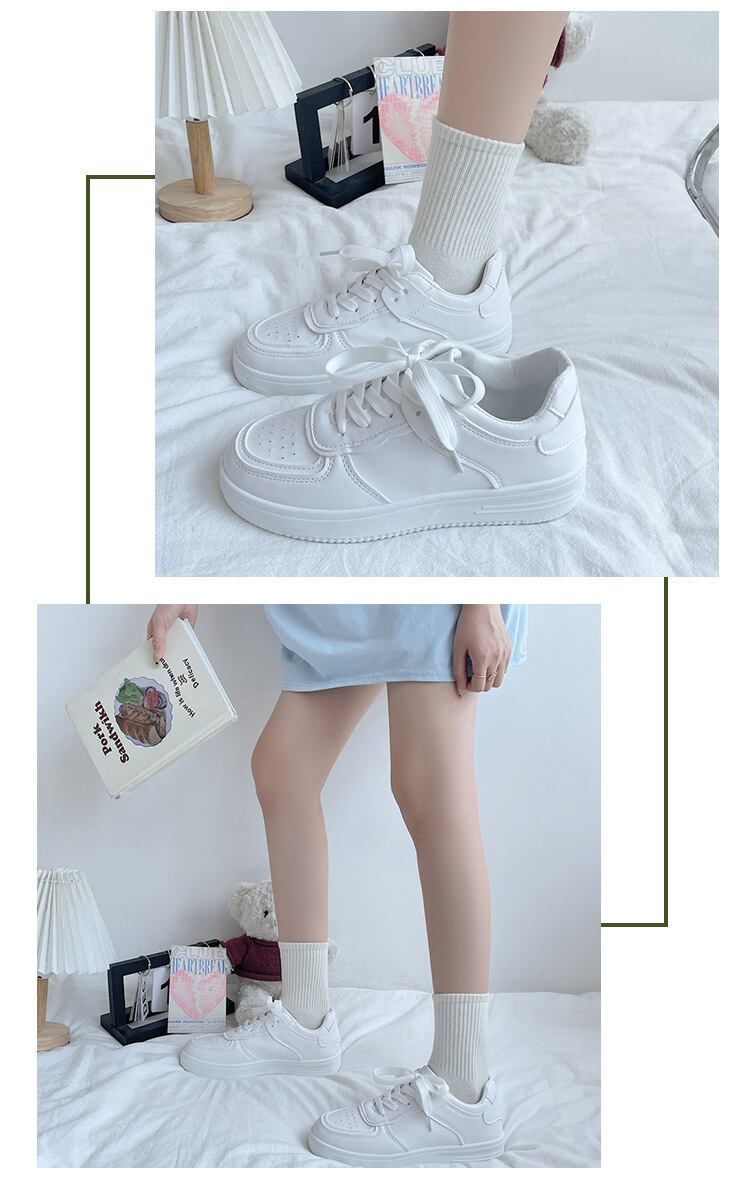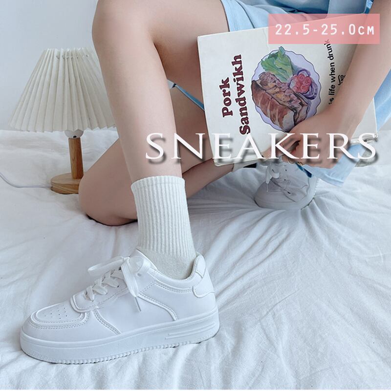 レディース スニーカー 紐靴 シューズ 厚底 スタイルアップ 弾力 ローカット 白 ホワイト 脚長